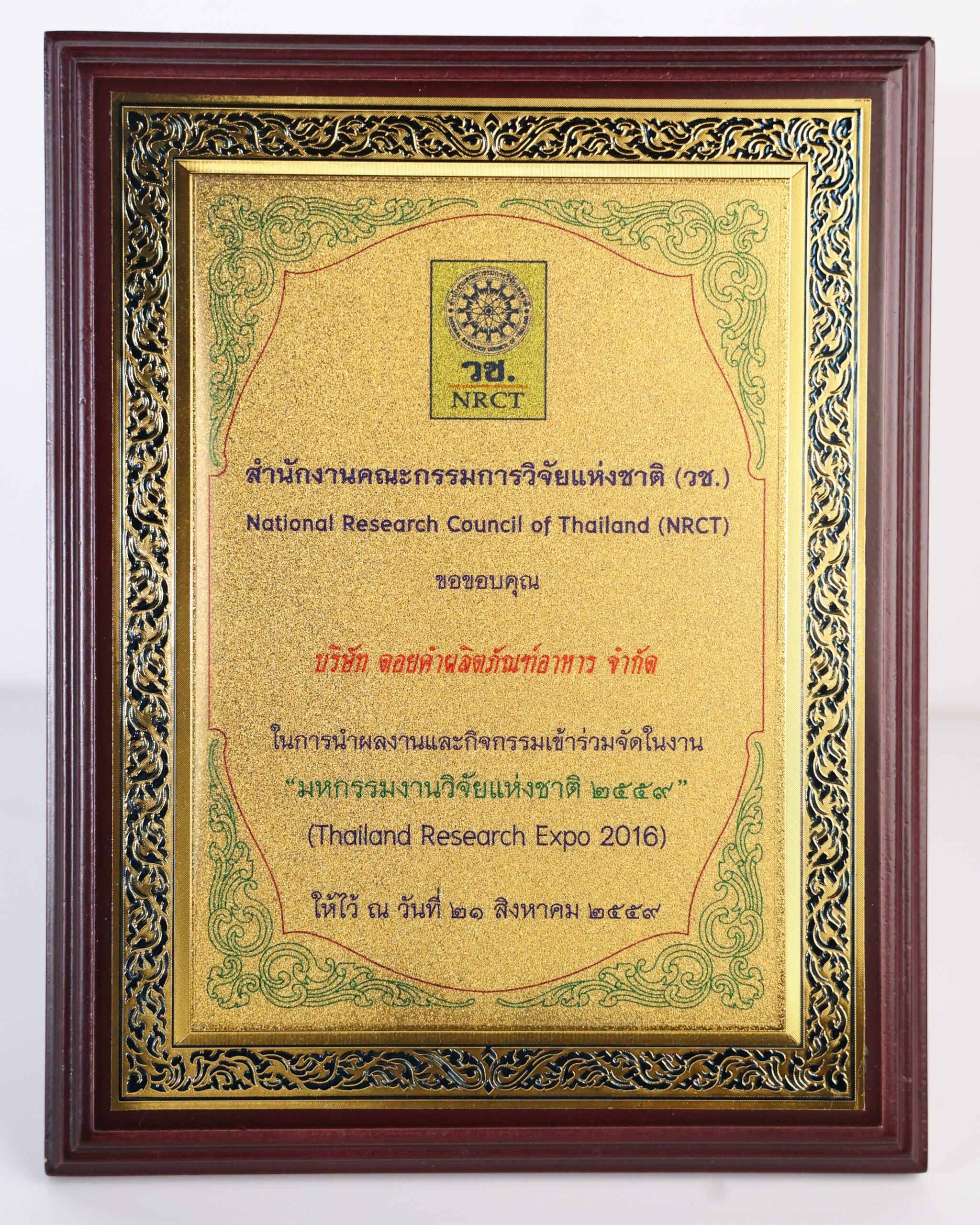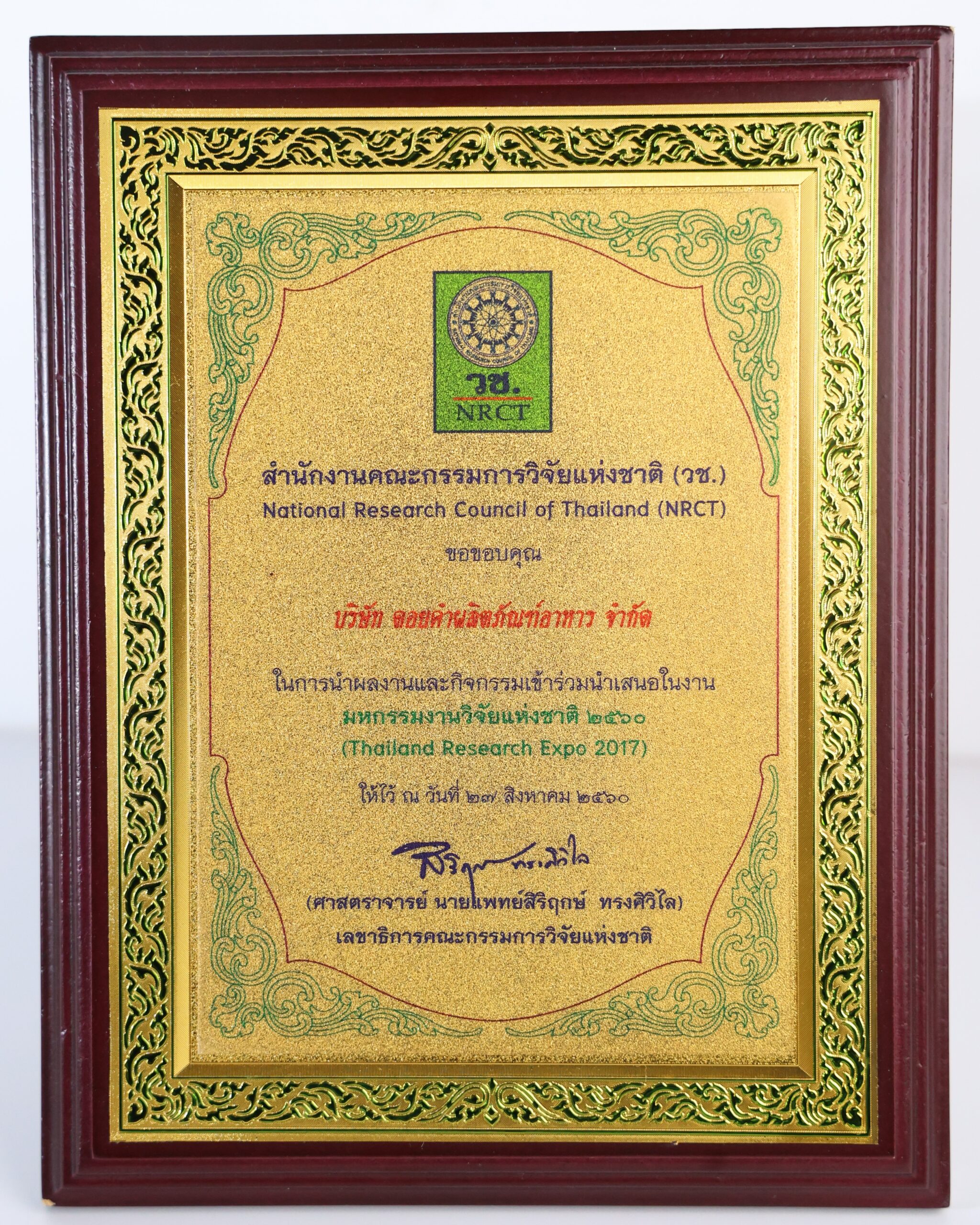 ประกาศนียบัตรนำเสนอผลงานและกิจกรรมเข้าร่วม ในงาน “มหกรรมงานวิจัยแห่งชาติ” (Thailand Research Expo)