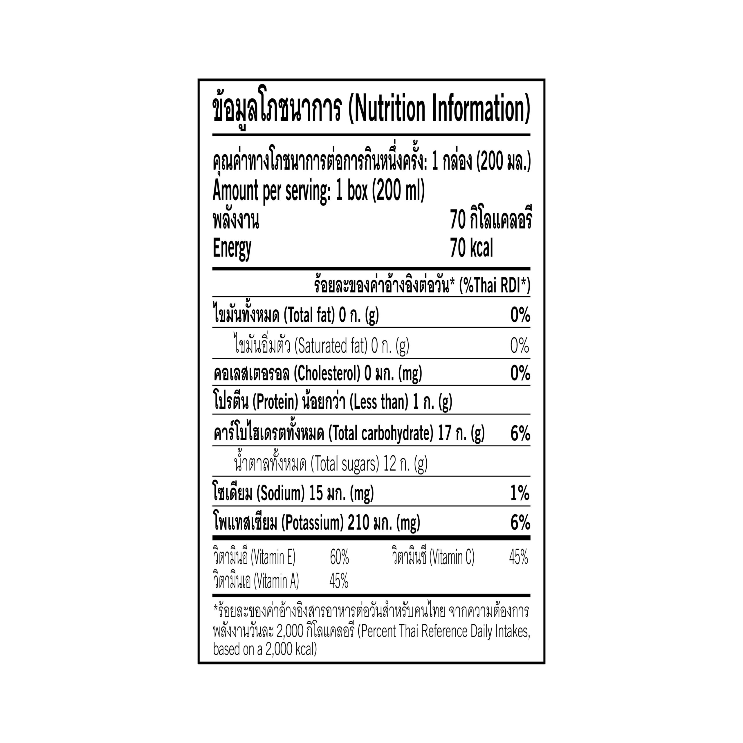 • ไม่ผสมน้ำผลไม้เข้มข้น Not from Concentrate