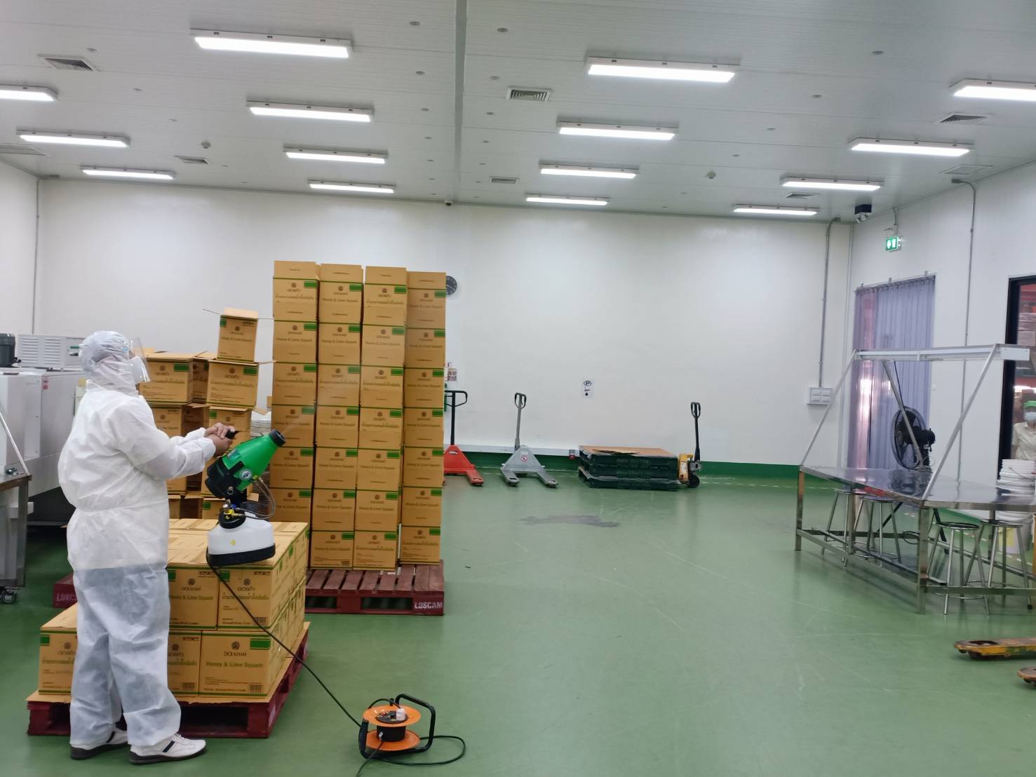 นอกจากนี้ บริษัทฯ ได้คำนึงถึงความปลอดภัย ความสะอาด ต่อกระบวนการผลิต และการบริการ จึงได้มีมาตรการคัดกรองเจ้าหน้าที่และพนักงาน และได้ดำเนินการฉีดพ่นยาฆ่าเชื้อ ณ สำนักงานใหญ่ และรอบโรงงานหลวงฯ ทั้ง 3 แห่ง ด้วยเครื่องพ่นยา แบบสายหลัง และเครื่องพ่นละอองฝอยแบบ ULV (Ultra Low Value) ที่ได้มาตรฐานในการพ่นฆ่าเชื้อ ขนาดเม็ดน้ำยาที่ถูกต้องตามมาตรฐานการลอยตัวของน้ำยาฆ่าเชื้อในอากาศ พร้อมใช้น้ำยาที่มีคุณภาพมาตรฐานอาหารปลอดภัย (Food Grade) ซึ่งเป็นการป้องกันการแพร่ระบาดของเชื้อไวรัสโคโรนา 2019 (โควิด-19) เพื่อสร้างความมั่นใจในกระบวนการผลิตและการบริการของดอยคำ ให้มีความสะอาดและปลอดภัยสูงสุดอยู่เสมอ