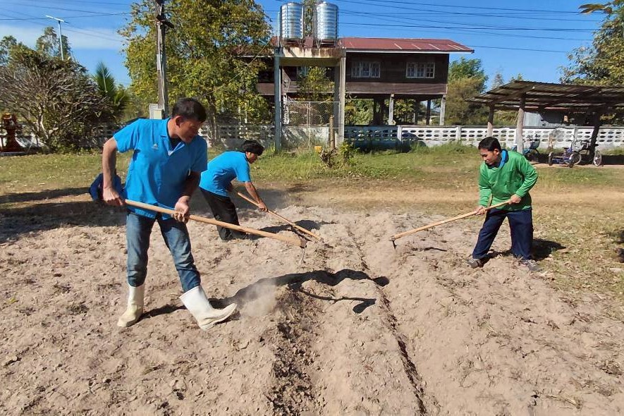 โรงงานหลวงอาหารสำเร็จรูปที่ 3 (เต่างอย) จังหวัดสกลนคร และชาวบ้านนางอย-โพนปลาโหล ร่วมจัดพิธีเจริญพระพุทธมนต์ ถวายภัตตาหารเพล และเครื่องไทยธรรม พร้อมทั้งกิจกรรมจิตอาสาฅนดอยคำ ทำความดีด้วยหัวใจ จัดทำแปลงปลูกผัก ทาสีสนาม ตัดหญ้า ณ โรงเรียนนางอยโพนปลาโหล และทำความสะอาดบริเวณพื้นที่ภายในวัดนางอย เพื่อถวายเป็นพระราชกุศล