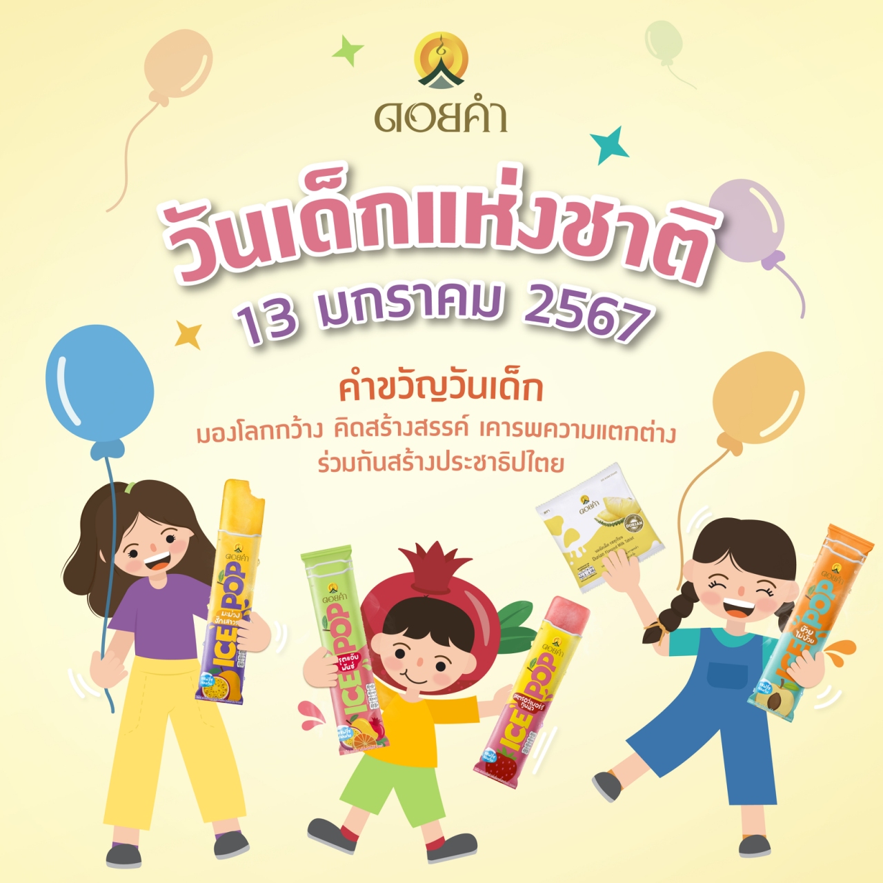 วันที่ 13 มกราคม 2567 บริษัท ดอยคำผลิตภัณฑ์อาหาร จำกัด นำโดย นายรมร ธนะโสภณ ผู้ช่วยผู้จัดการใหญ่ สายการผลิต นางสาวอัญกรณ์ มีนะกรรณ ผู้ช่วยผู้จัดการใหญ่ สายการตลาด นำทีมฅนดอยคำร่วมสร้างสีสันในงานวันเด็กแห่งชาติ ประจำปี 2567 ณ บริเวณตึกบัญชาการ 2 ทำเนียบรัฐบาล โดยยกกิจกรรมรักษ์โลกอย่าง “แกะ ล้าง เก็บ” ให้เยาวชนทดลองนำกล่องน้ำผลไม้ และซอง ICE POP ตราดอยคำ ที่ได้รับแจกภายในงาน มาทำความสะอาดก่อนแยกขยะเพื่อนำไปจัดการอย่างถูกวิธี นอกจากนี้ยังมีโดนัททาแยมผลไม้ดอยคำ บูธกิจกรรมเล่นเกม และของรางวัลอีกมากมาย สร้างความสนุกให้กับเยาวชนที่มาร่วมงาน