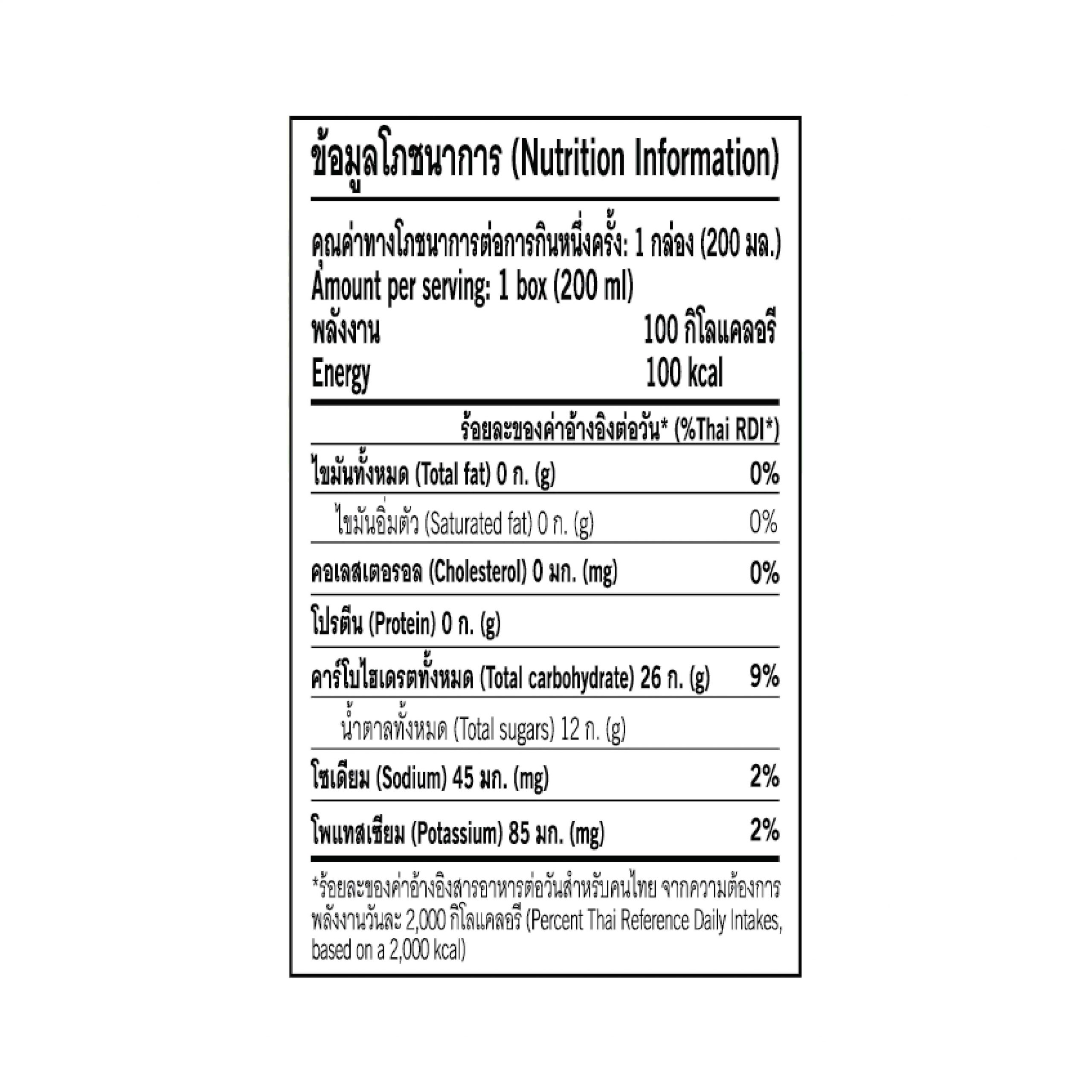 คำแนะนำ (ข้อควรระวัง): แช่เย็นและเขย่ากล่องก่อนดื่ม เพื่อรสชาติที่ดียิ่งขึ้น