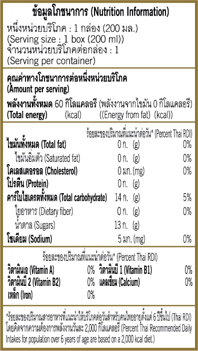 คำแนะนำ (ข้อควรระวัง): แช่เย็นและเขย่ากล่องก่อนดื่ม เพื่อรสชาติที่ดียิ่งขึ้น
