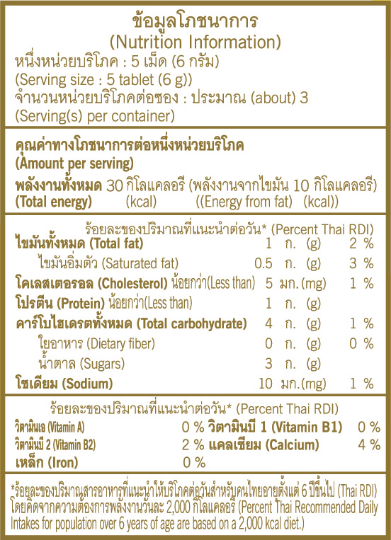 คำแนะนำ (ข้อควรระวัง): ปิดซองให้สนิททุกครั้งและควรเก็บในที่แห้งและเย็น