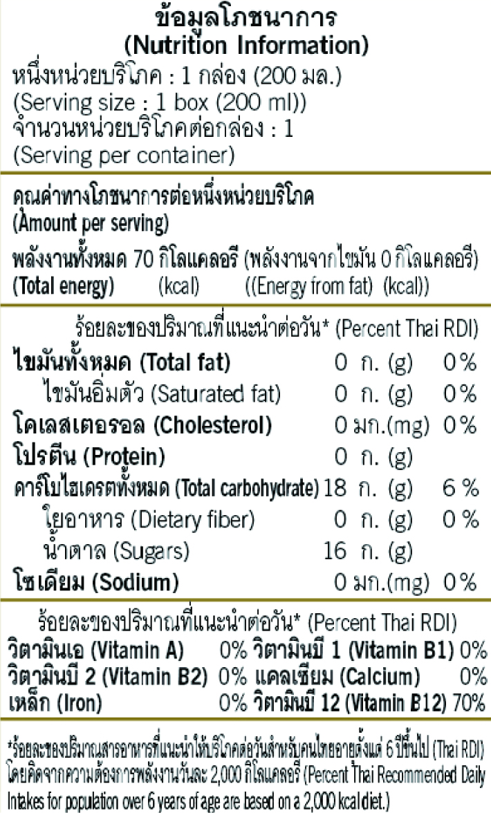คำแนะนำ (ข้อควรระวัง): แช่เย็นและเขย่ากล่องก่อนดื่ม เพื่อรสชาติที่ดียิ่งขึ้น