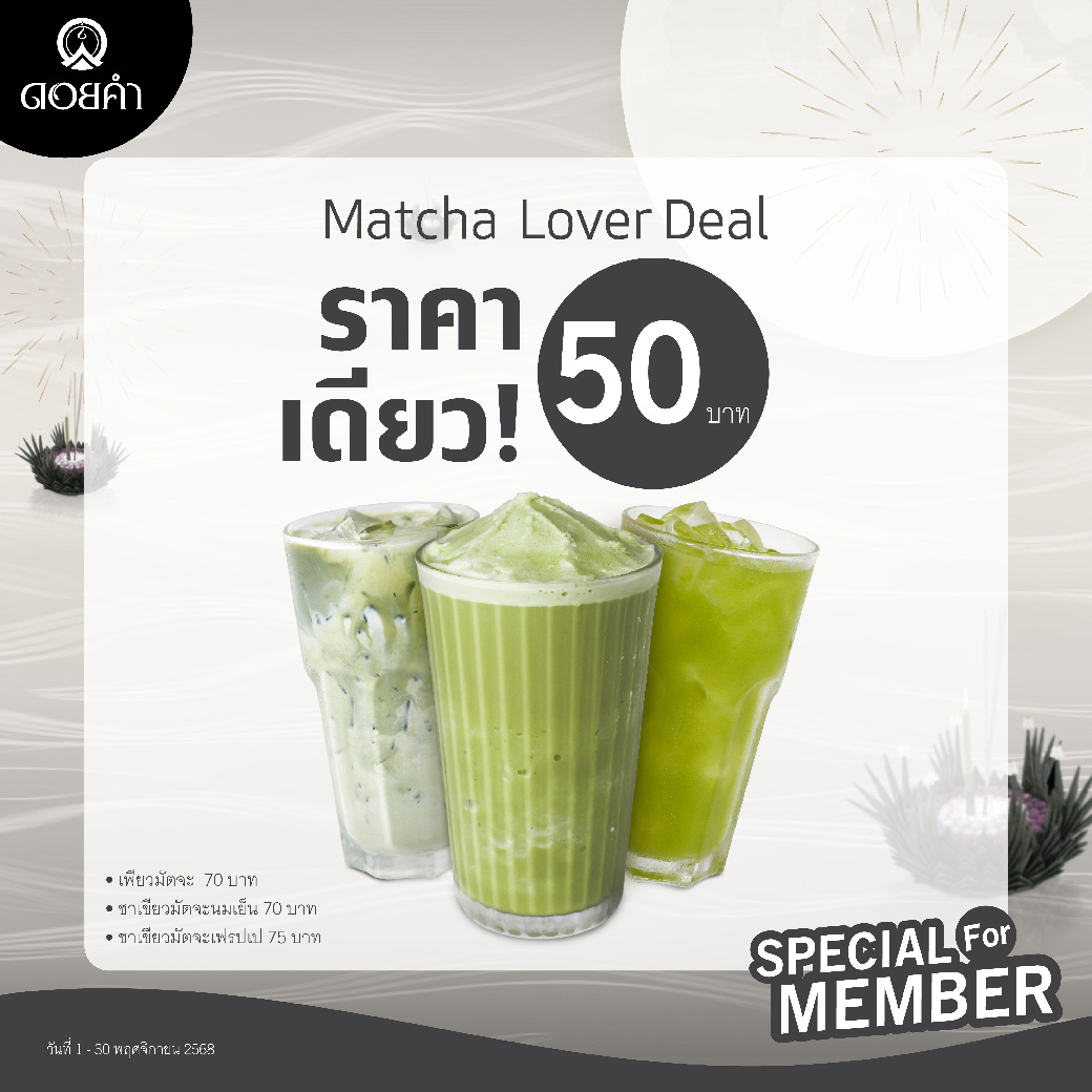 ♦ Matcha Lover Deal เครื่องดื่มเมนูมัตจะ ราคาพิเศษ 50 บาท