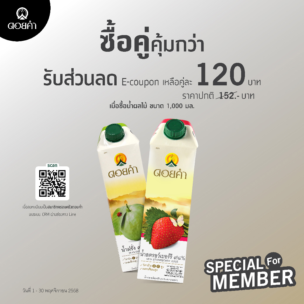 นำมาเป็นส่วนลดแทนเงินสด เมื่อซื้อสินค้าตราดอยคำครบ 500 บาทขึ้นไป ยกเว้นสินค้ากระเช้า และชุดของขวัญ