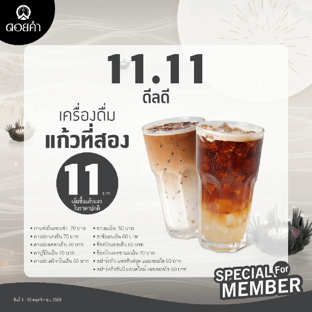 ♦ ซื้อเครื่องดื่มแก้วที่ 2 ราคา 11 บาท