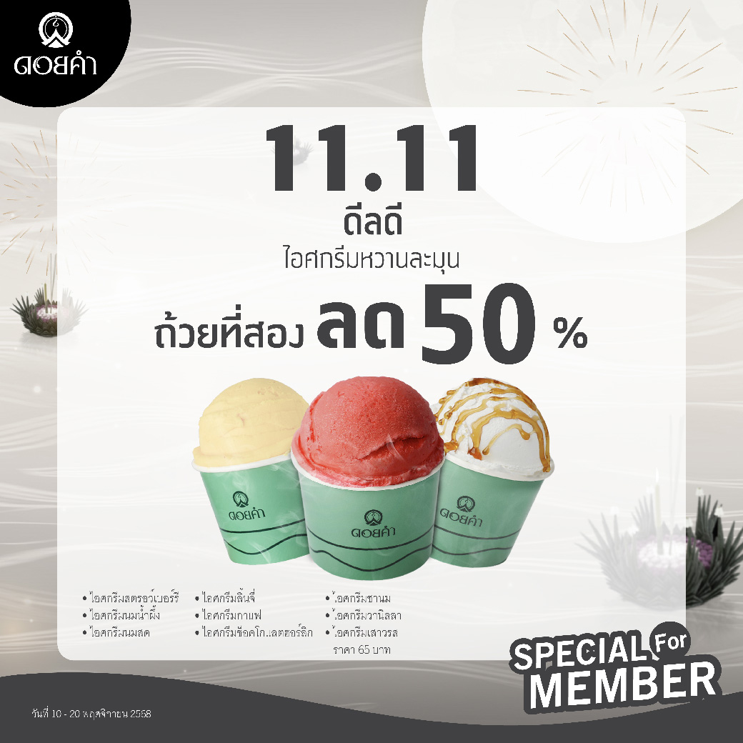 ♦ ซื้อไอศกรีมถ้วยที่ 2 ลด 50% ปกติราคาถ้วยละ 65 บาท