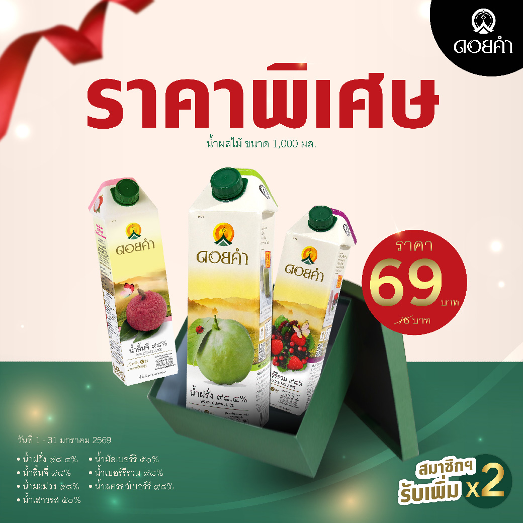 ♦ สำหรับสมาชิกครอบครัวดอยคำ “รับคะแนนสะสม X2” เมื่อซื้อสินค้าที่ร่วมรายการ