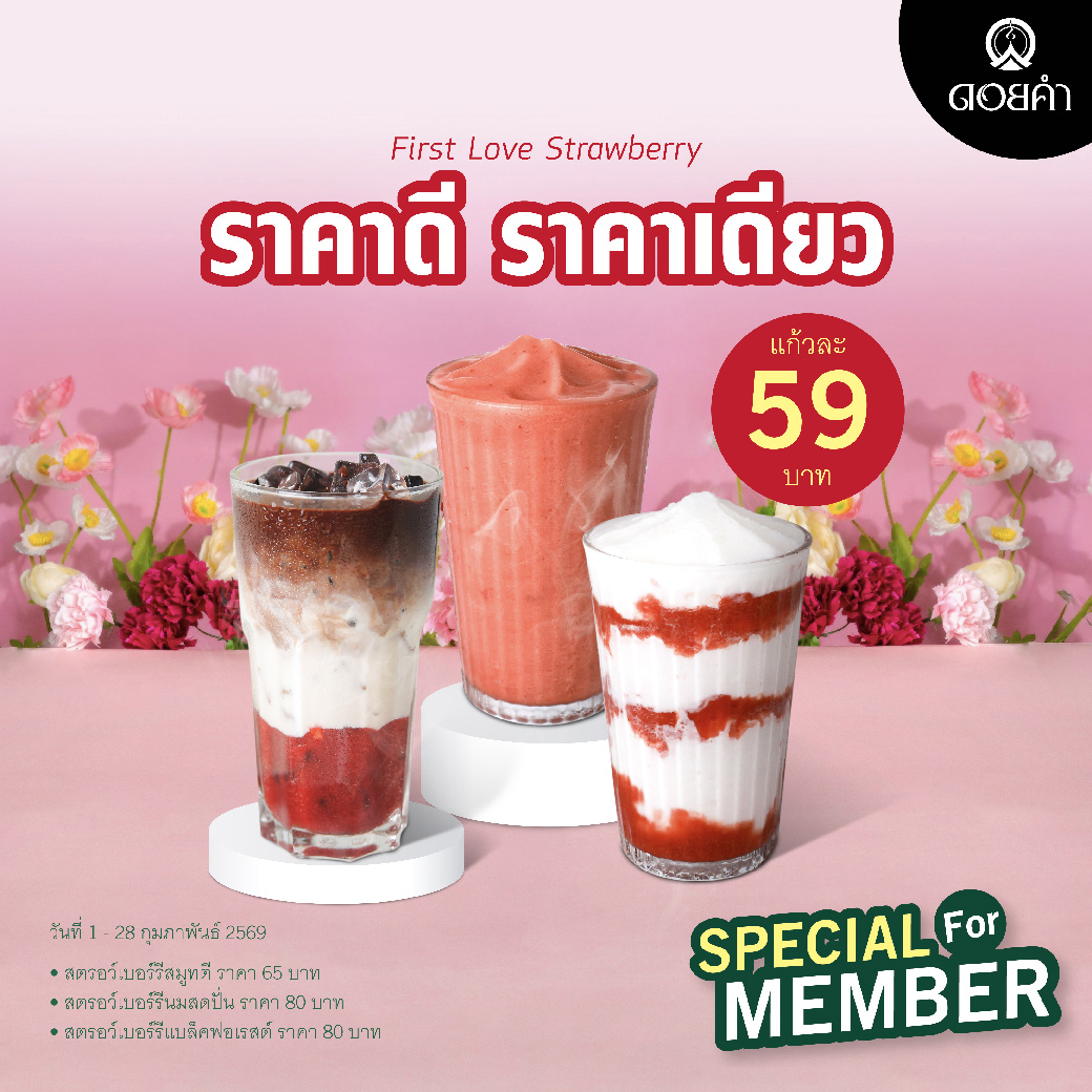 First Love Strawberry ราคาดี ราคาเดียว เมื่อซื้อเครื่องดื่มที่ร่วมรายการ ราคาแก้วละ 59 บาท