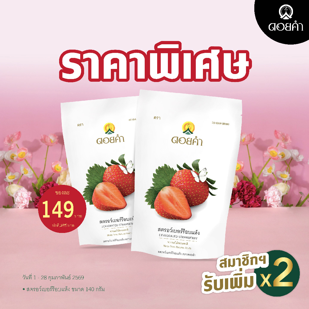 - สตรอว์เบอร์รีอบแห้ง ขนาด 140 กรัม ราคาพิเศษซองละ 149 บาท
